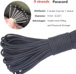 GeGeDa Paracord 9 Core 550 Parachute Cord Camping Rope 100FT (Black, 100feet)